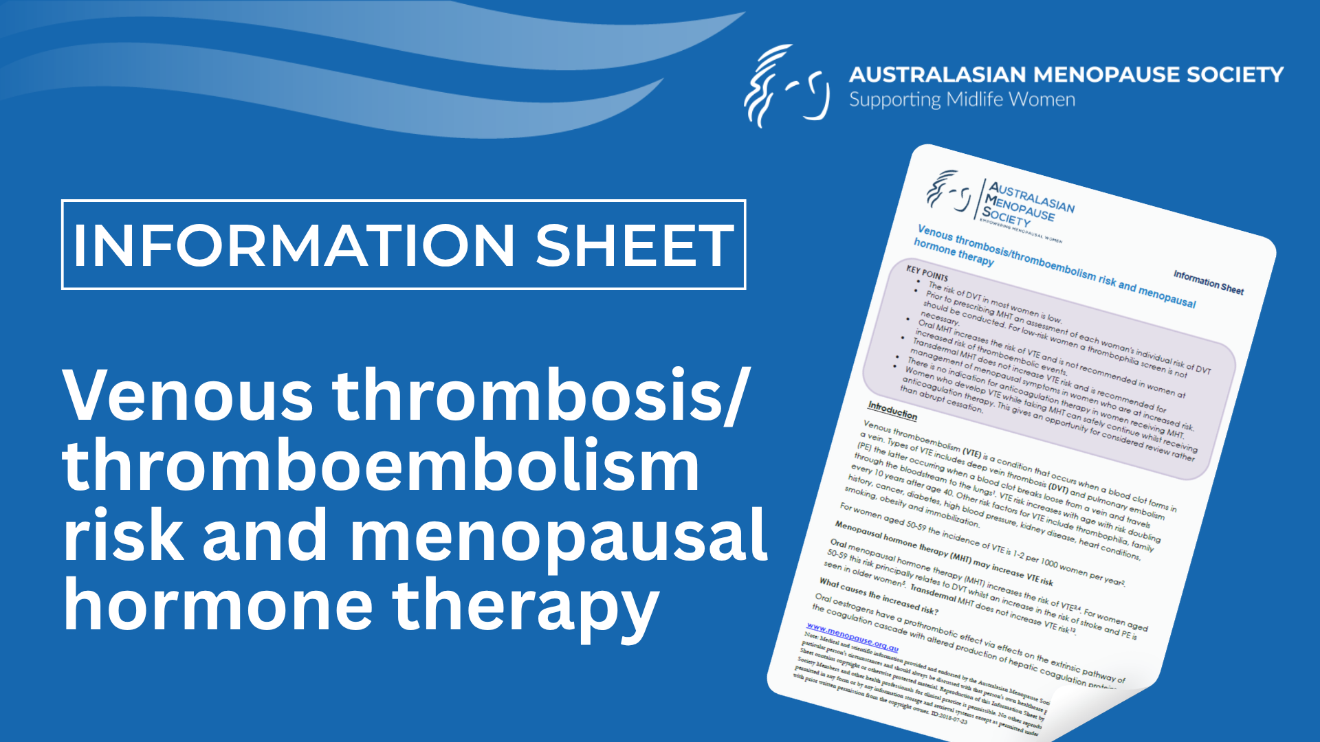 In these populations it is important to explain that whilst VTE risk is not increased with transdermal MHT the background risk of VTE associated with the applicable condition is still raised and minimisation of risk with lifestyle measures should be encouraged.