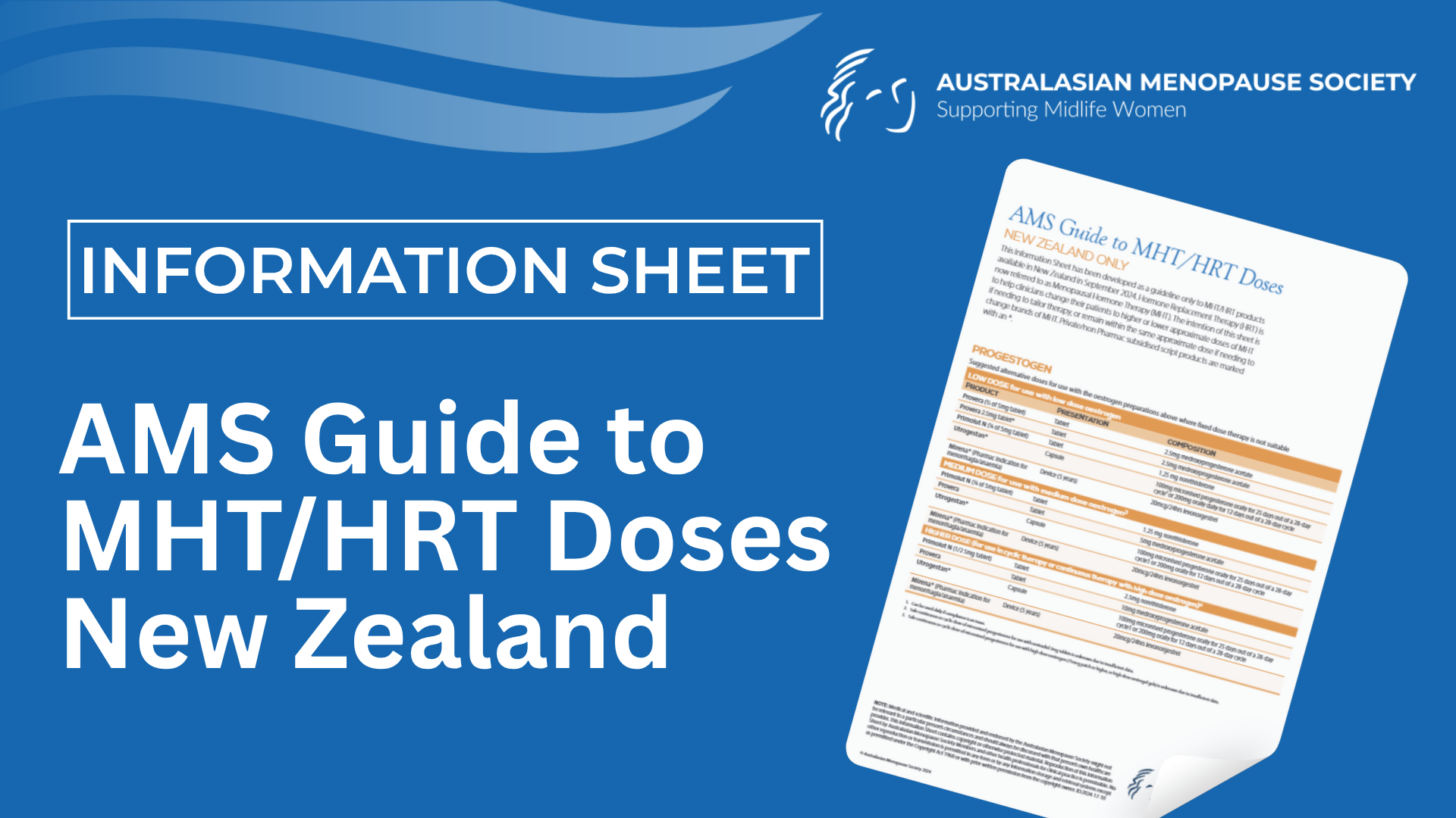 AMS Guide to MHT/HRT Doses New Zealand | Information Sheet