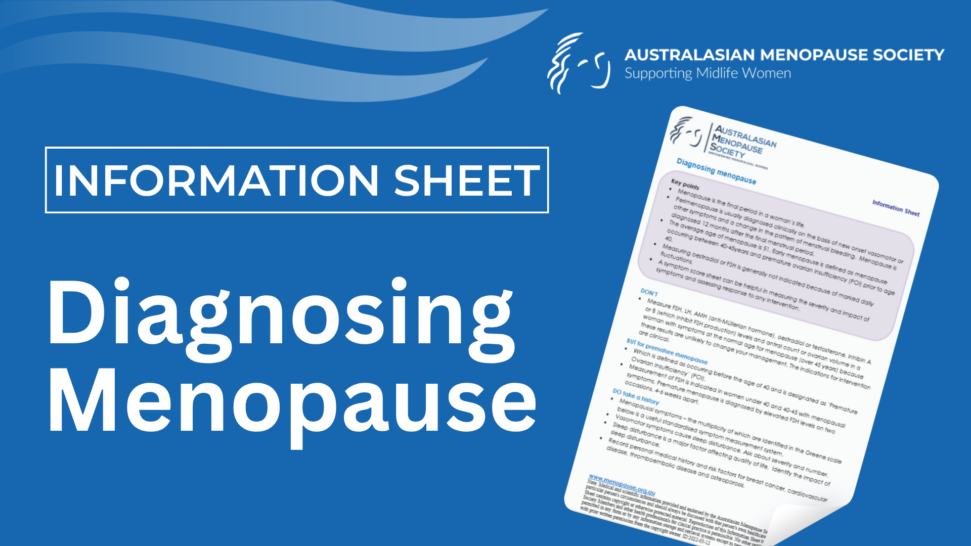 Diagnosing menopause is something that most GPs are skilled at doing and helping women at this difficult stage of their life can be very rewarding. If you are reading this information sheet because you have inadequate knowledge on how to counsel menopausal women, then consider joining the Australasian Menopause Society and receiving its monthly newsletter, called eChanges. Attend one of our annual meetings, which aim to be of interest to a wide range of doctors, nurses, psychologists and physiotherapists.